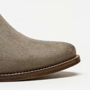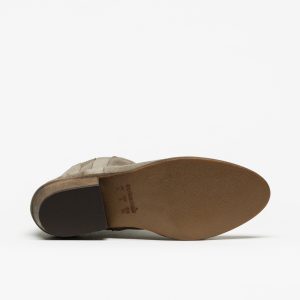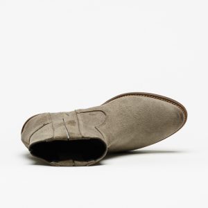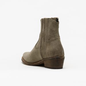 Botas de camurça cinzenta da marca Cubanas Bell 202, com cano curto e salto médio.