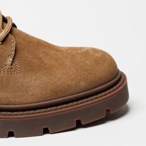 Bota Cubanas Dama 201 em cor beige — um clássico intemporal reinventado. Com um design inspirado nas icónicas botas de montanha, apresenta exterior em camurça macia, atacadores robustos e ilhós metálicos dourados que acrescentam um toque elegante.