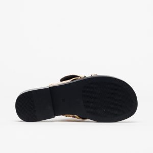 O chinelo Noa Harmon Rio Beige combina textura efeito ráfia com aplicação de tachas metálicas e fivela marcante, criando um modelo moderno e cheio de personalidade para os dias de verão.