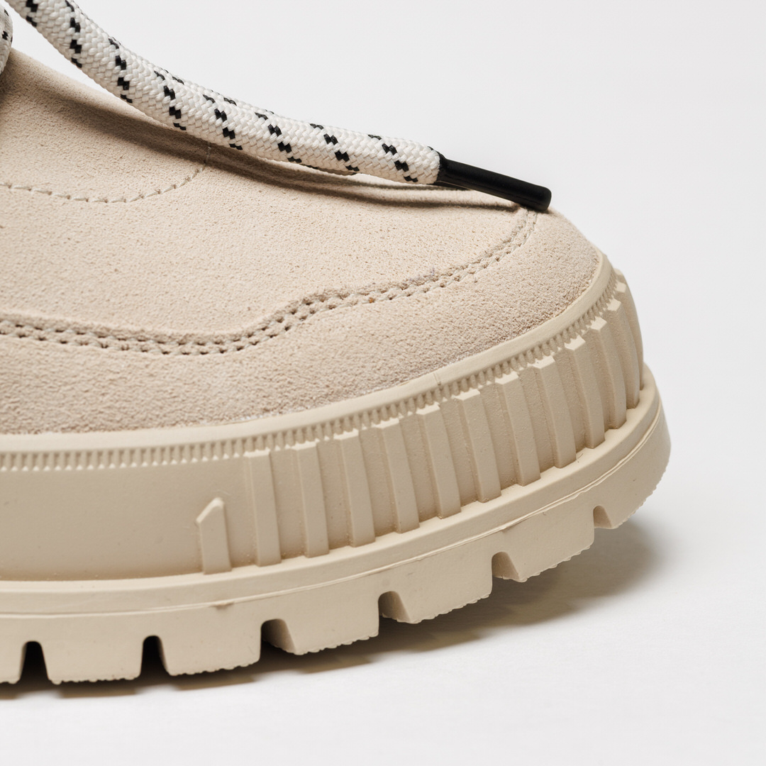 As Botas Palladium Pallashock Lo Hiver Almond combinam um interior quente e macio com uma sola robusta e aderente, perfeitas para os dias frios.