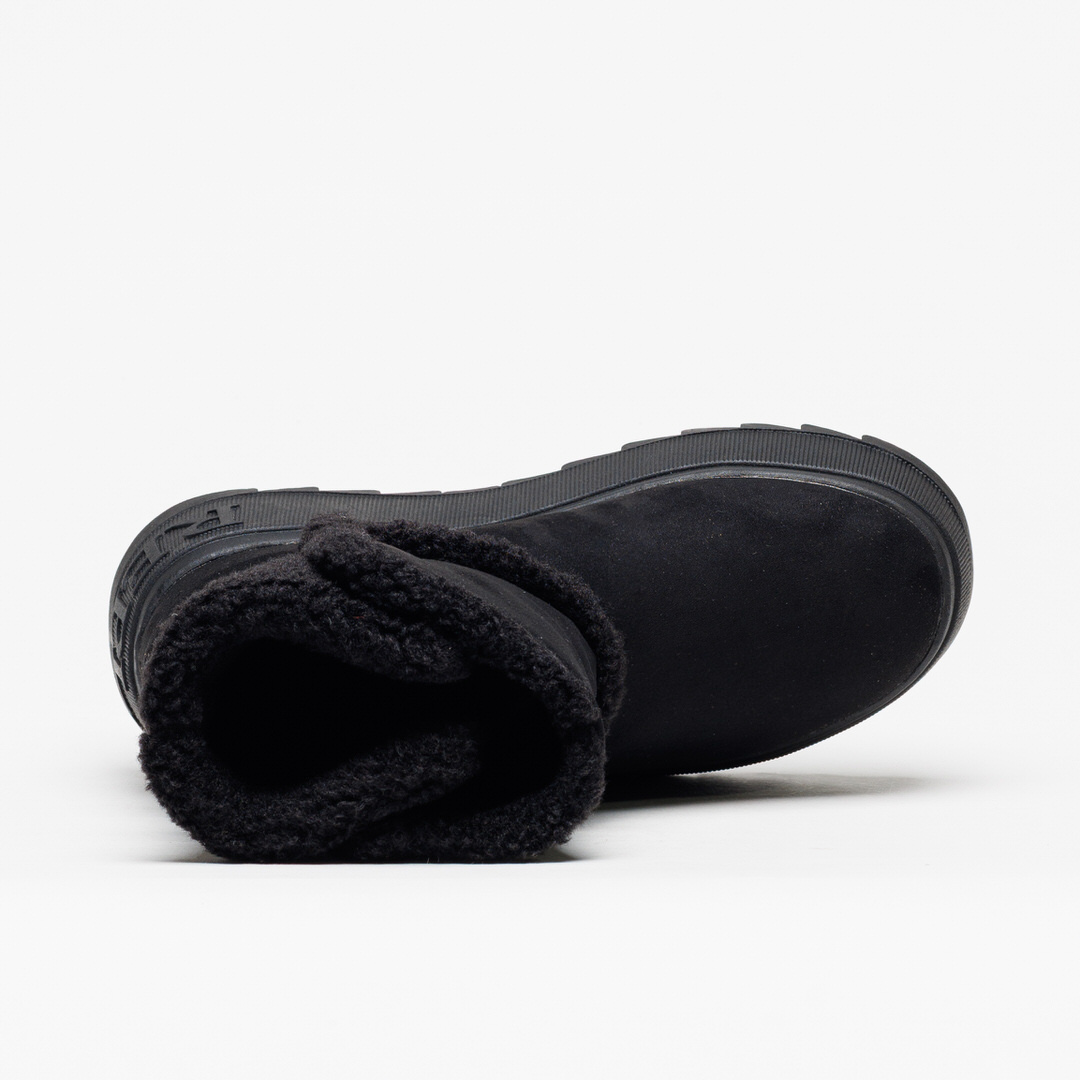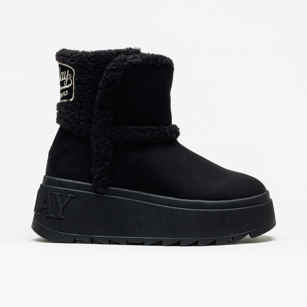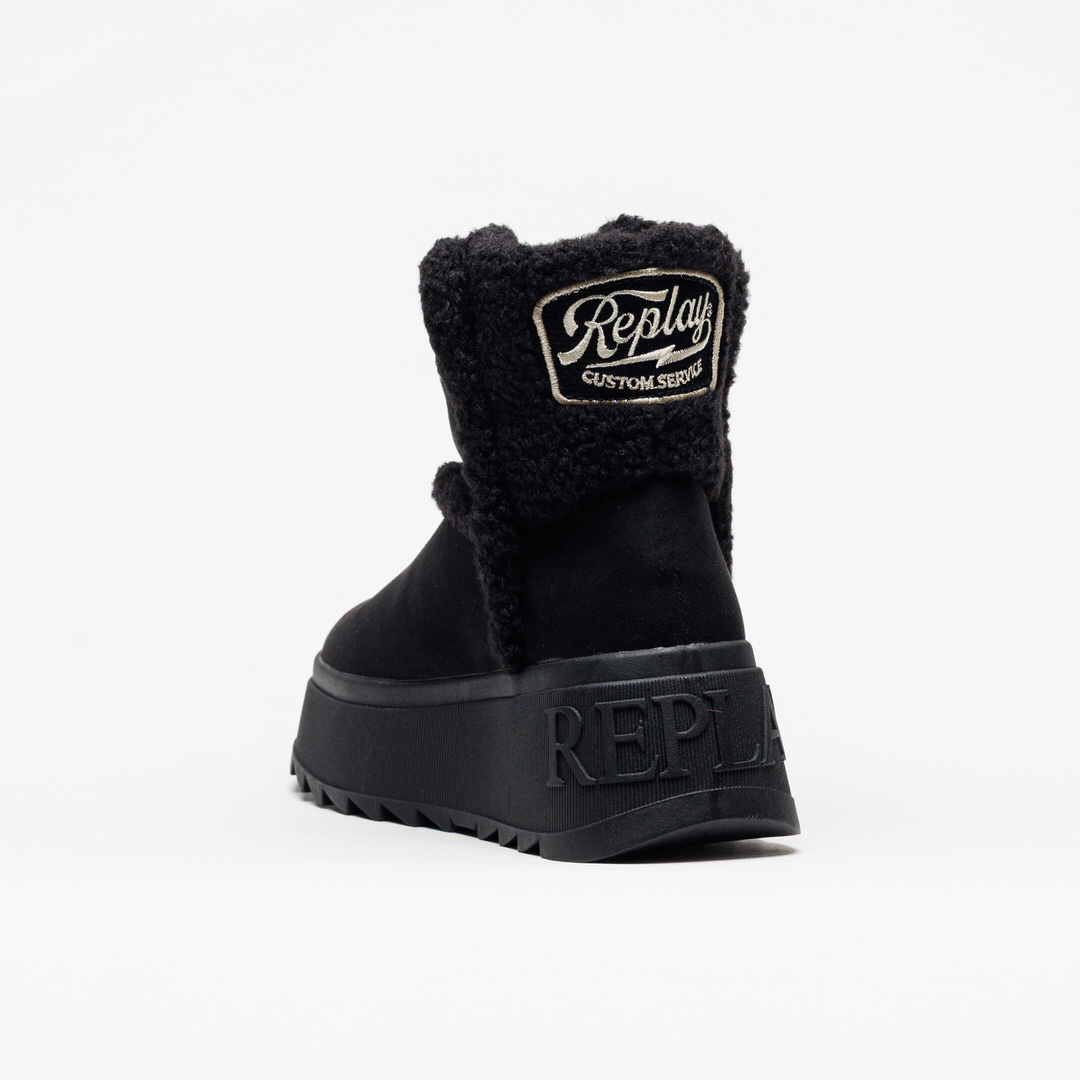 Bota Replay Vixxi Hair Black Black, da Nova Coleção Outono / Inverno, com acabamento em camurça preta e interior forrado em pelo suave, garantindo máximo conforto e um toque acolhedor.