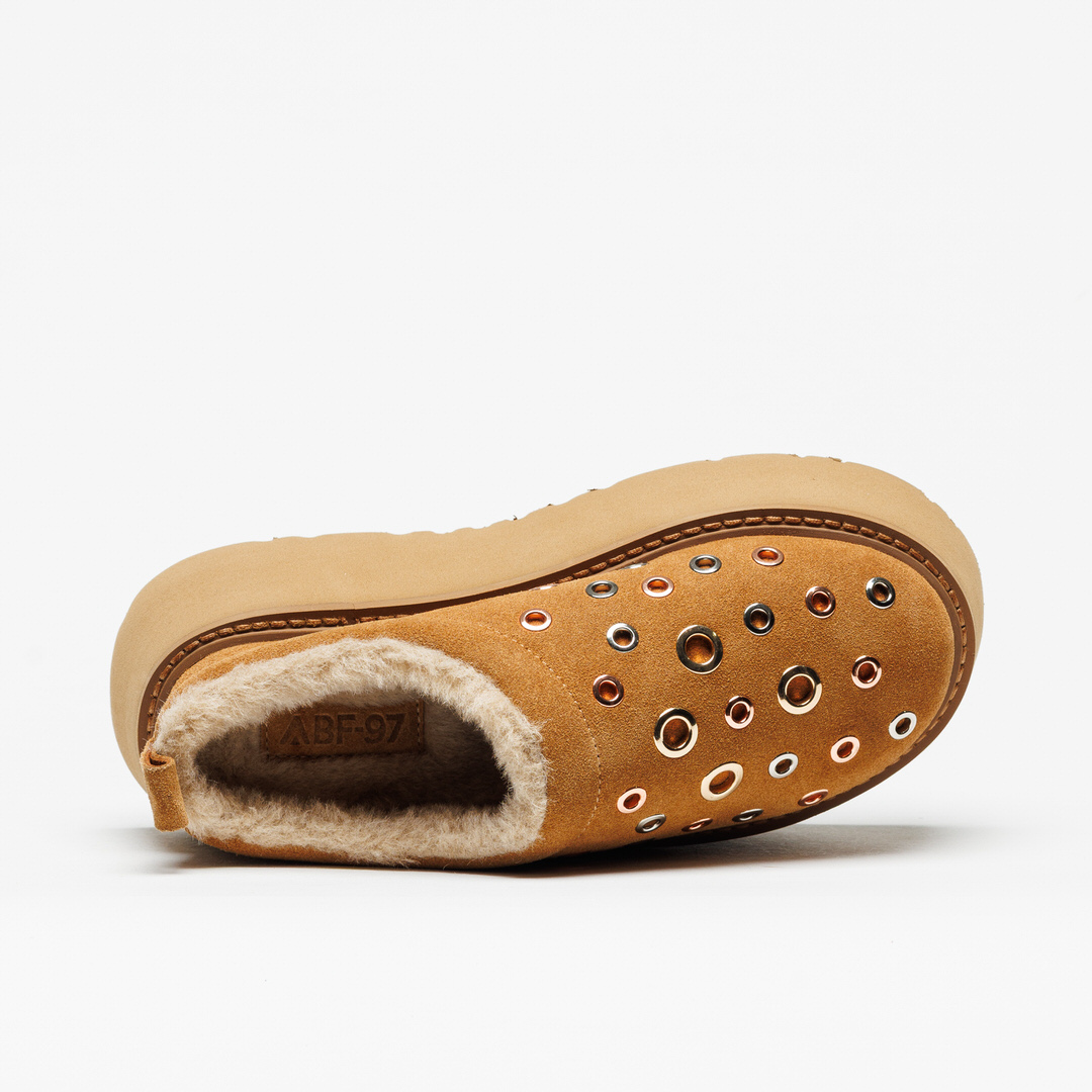 Tamanco plataforma Fenix 205 da marca ABF-97, um modelo cheio de estilo e conforto. Com acabamento em camurça e forro em pêlo sintético macio, envolve o pé de forma aconchegante, ideal para os dias frios.