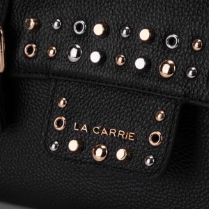 Mala La Carrie modelo Atena em cor Black (referência 152P-XB-119-TBL_BLA), em pele martelada com aplicações metálicas em diferentes tamanhos, conferindo-lhe um estilo marcante e sofisticado.