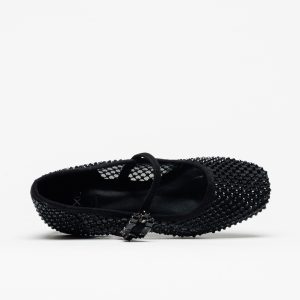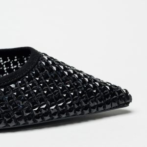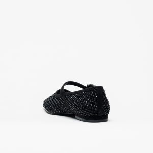 Sabrina Eliza 260 da marca Exé, um modelo delicado e elegante que se destaca pelos detalhes em rede com aplicações brilhantes. O design em bico fino alonga visualmente o pé, conferindo um toque sofisticado a qualquer look.