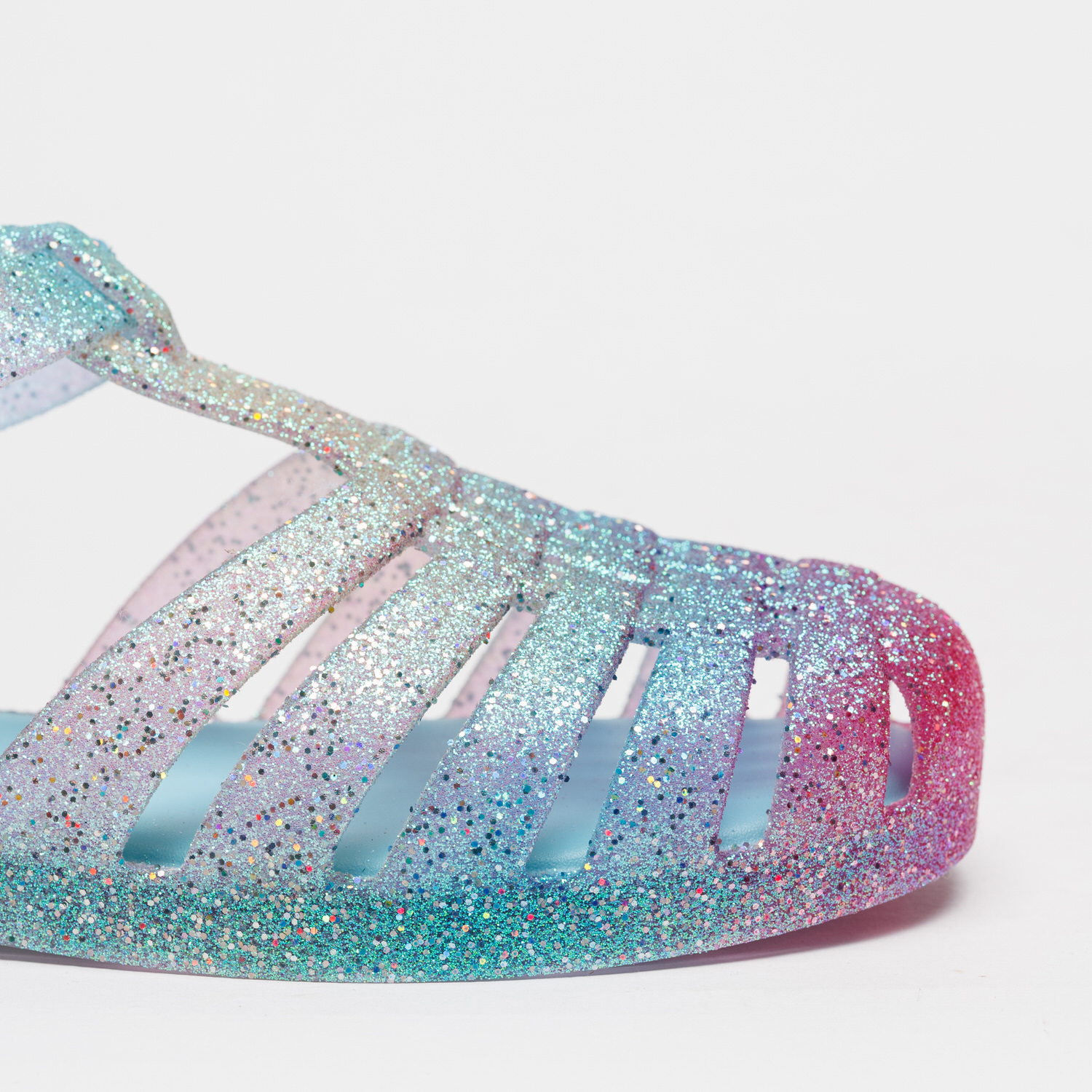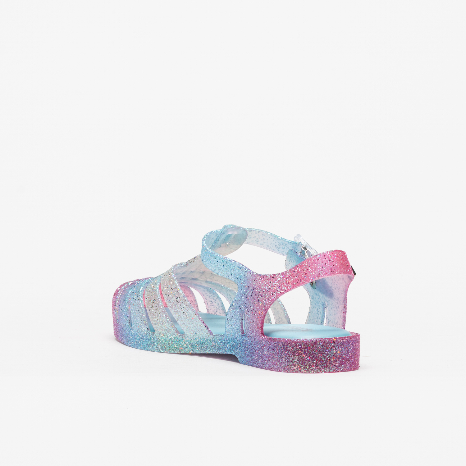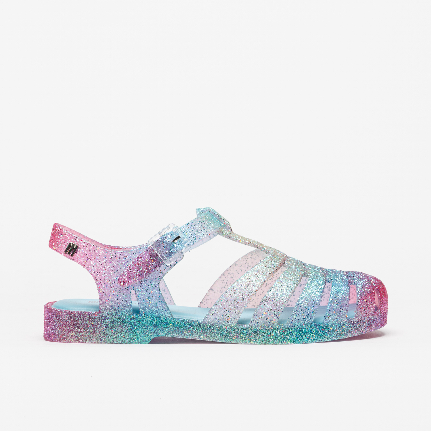 A Sandália Melissa Possession Glitter Azul destaca-se pelo acabamento multicolor que dá um toque moderno e irreverente ao modelo icónico.