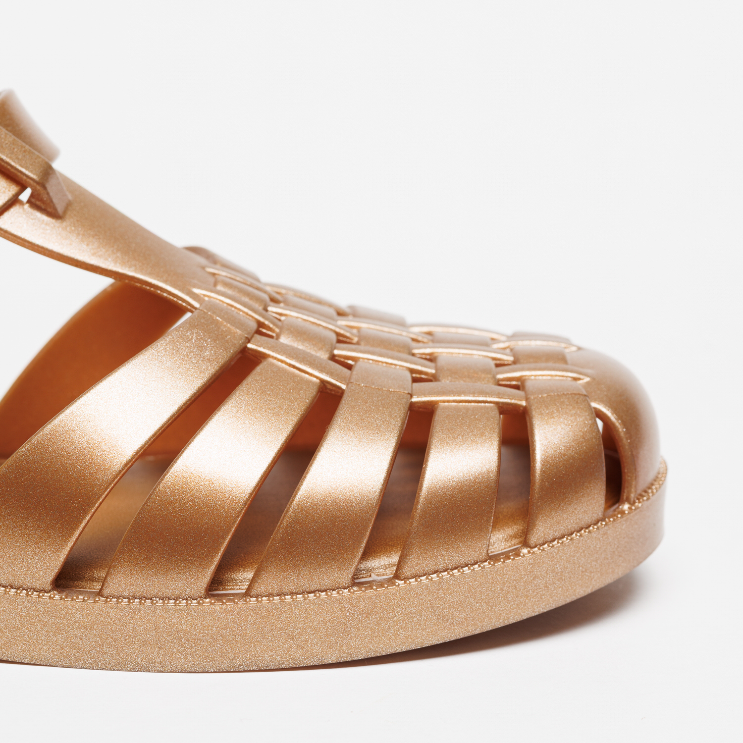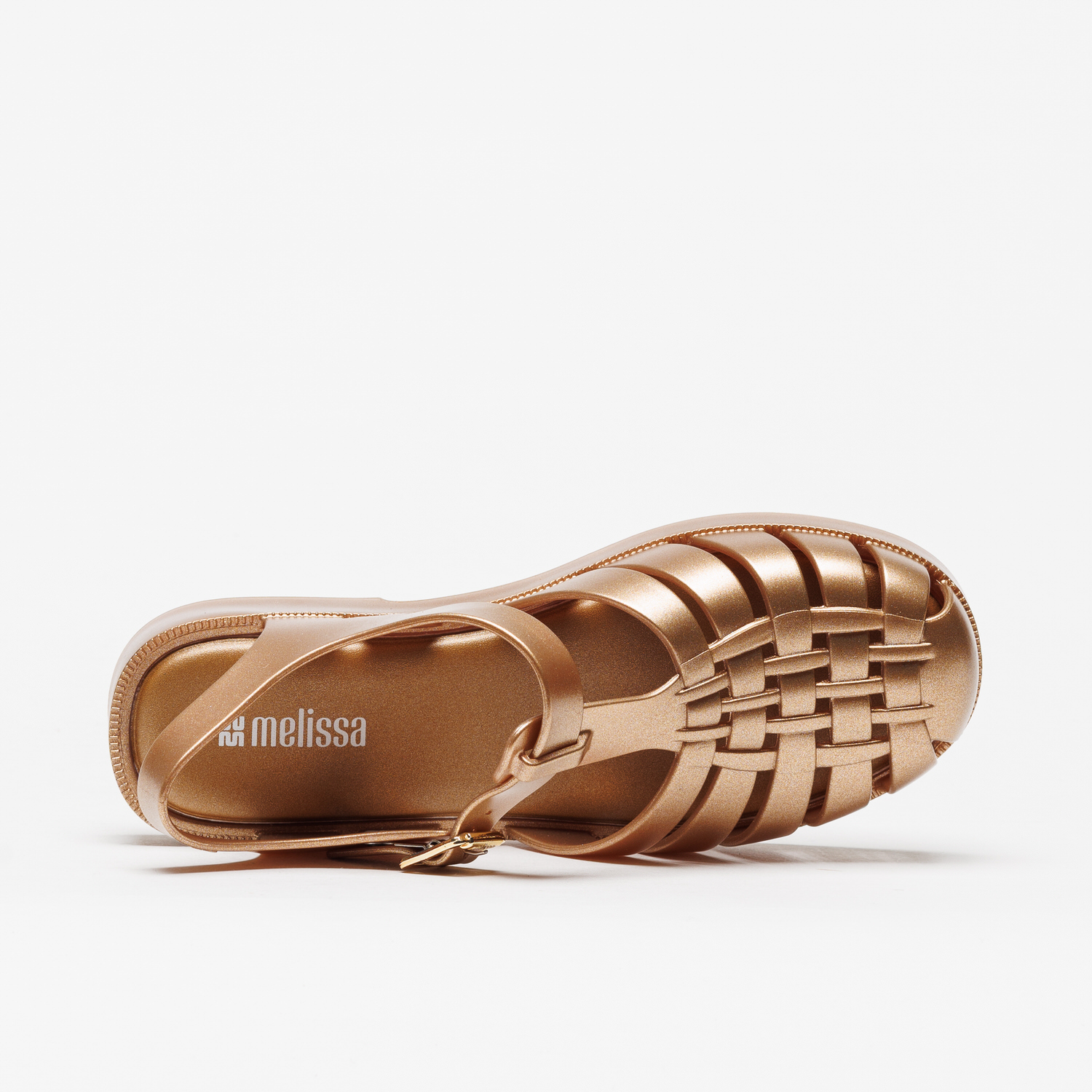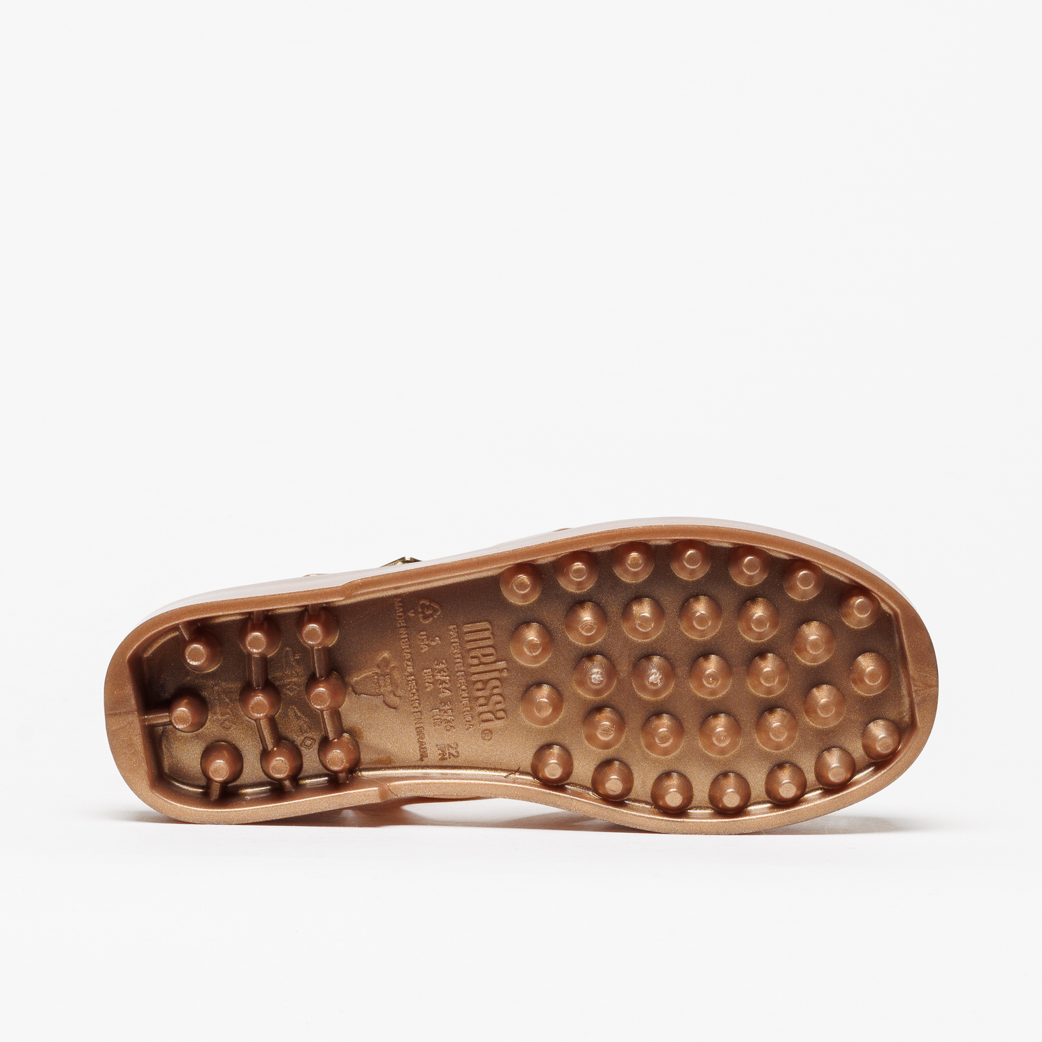 A Sandália Melissa Possession Magic Dourado eleva o modelo icónico com um acabamento metalizado sofisticado.