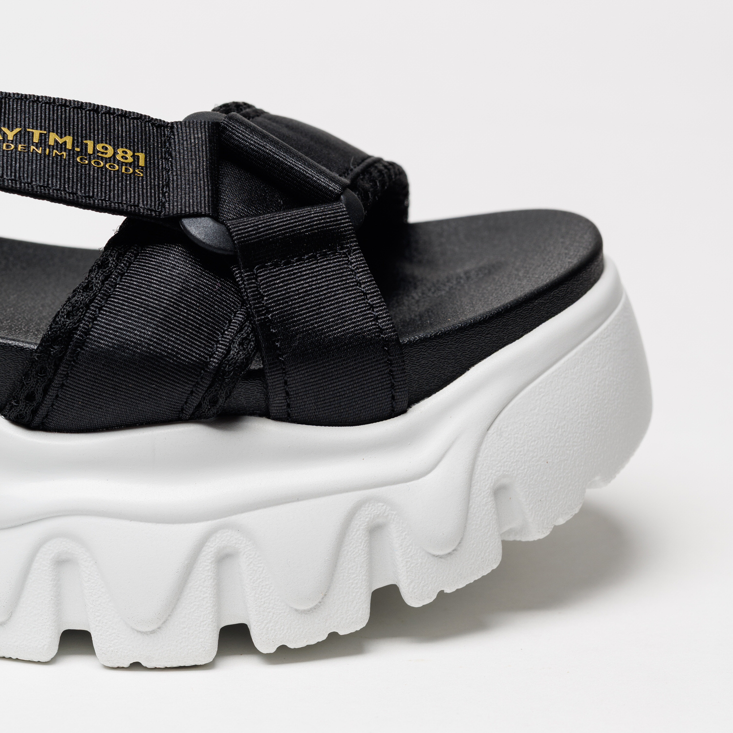 Com tiras em tecido e ajuste em velcro, este modelo garante um encaixe prático e seguro, ideal para o dia a dia. A palmilha confortável adapta-se ao pé, enquanto a sola plataforma robusta — leve e estável — proporciona maior altura sem comprometer o conforto