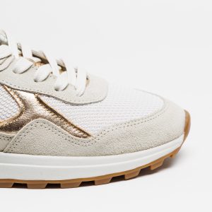 Sapatilha Cubanas Ret 230 White é a escolha ideal para quem procura sapatilhas brancas de senhora com design moderno e detalhes dourados que elevam qualquer look casual ou urbano.