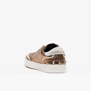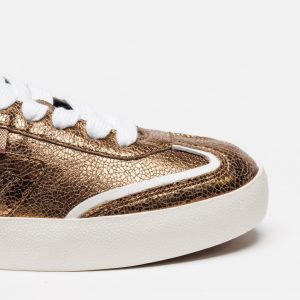 Descubra as sofisticadas sapatilhas Emanuelle Vee, modelo Olivia All Sint Laminato, em cor Gold, da nova coleção Outono Inverno.