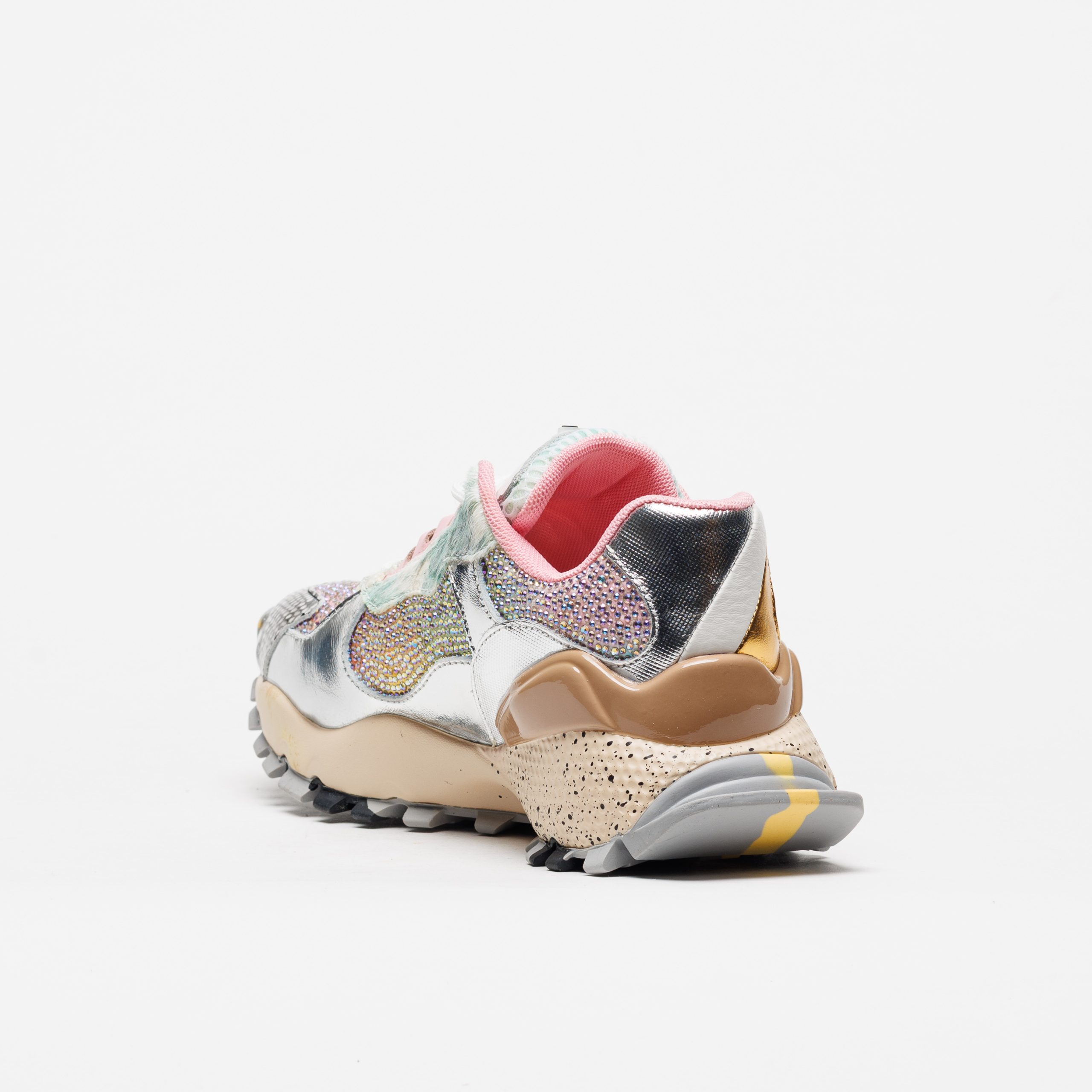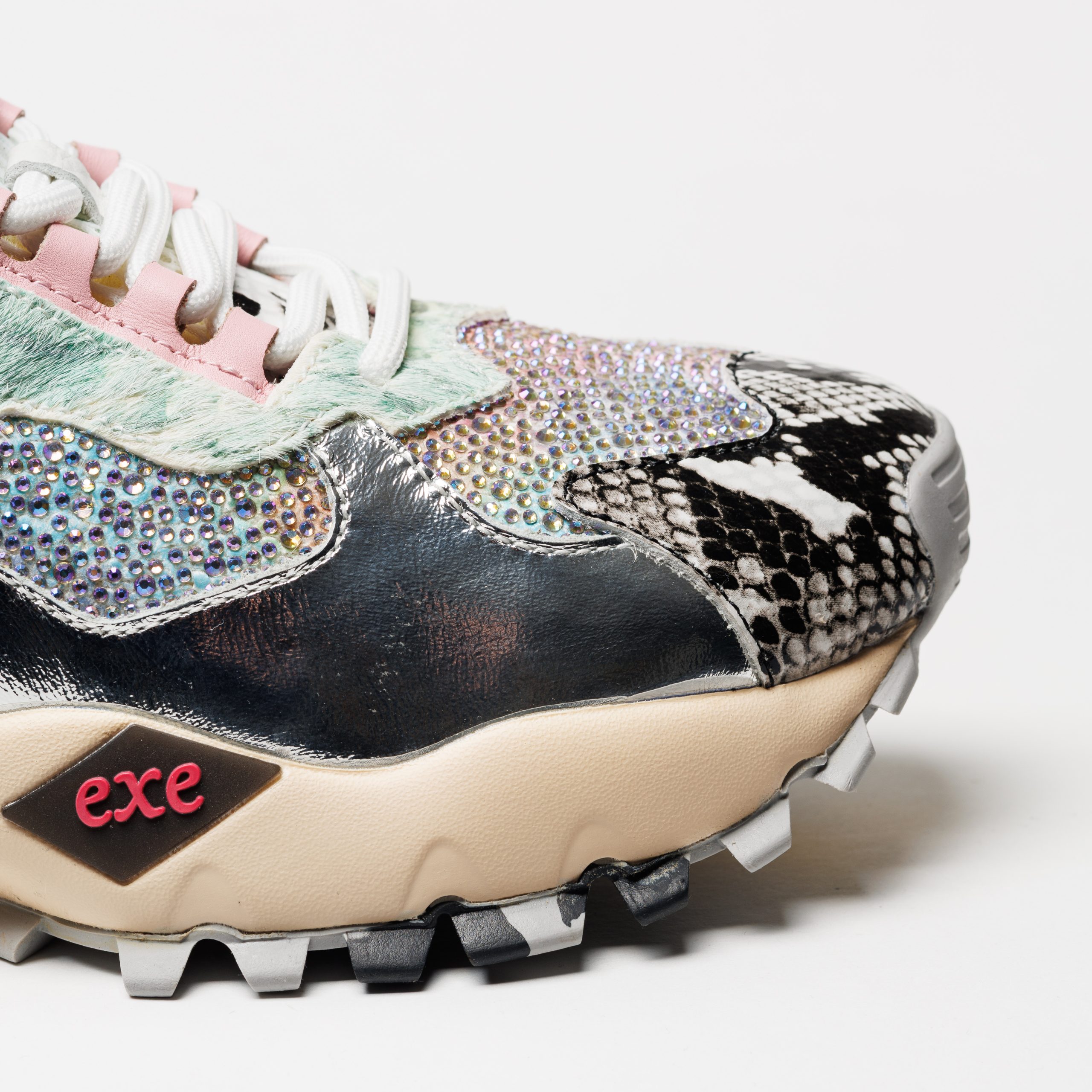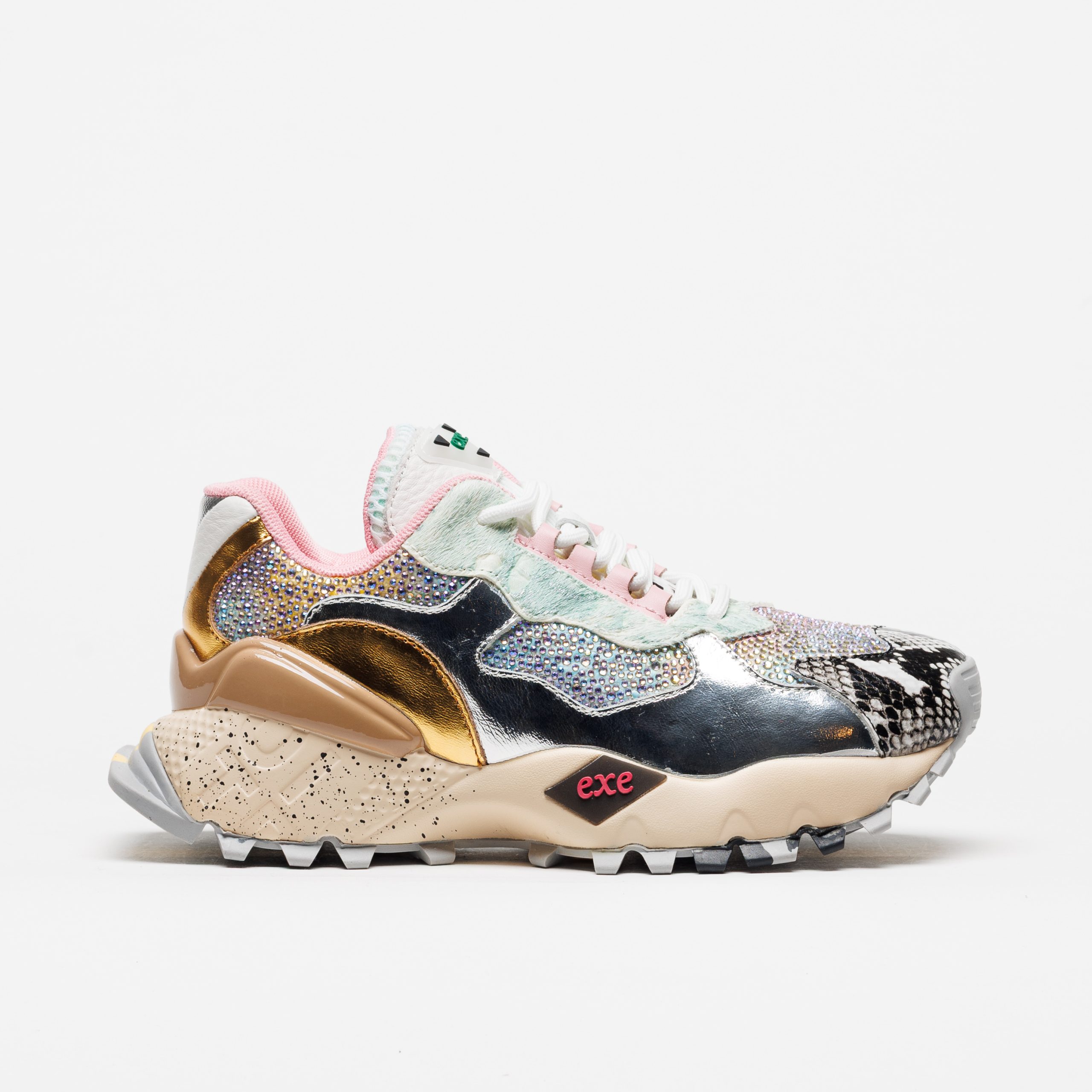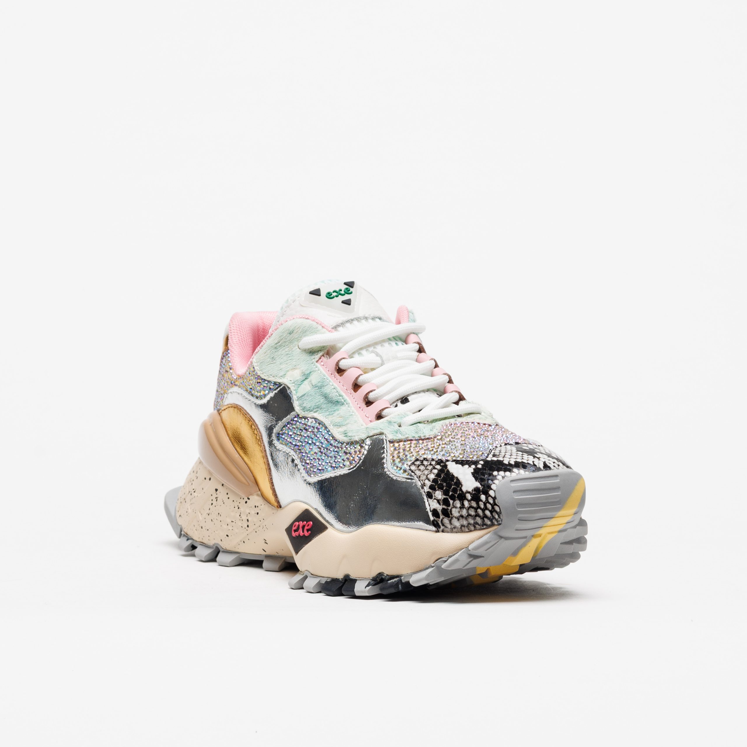 A sapatilha Exé 134-166 Silver Pink chama a atenção pela combinação de Silver com rosa contrastantes que lhe dão um visual leve e contemporâneo.