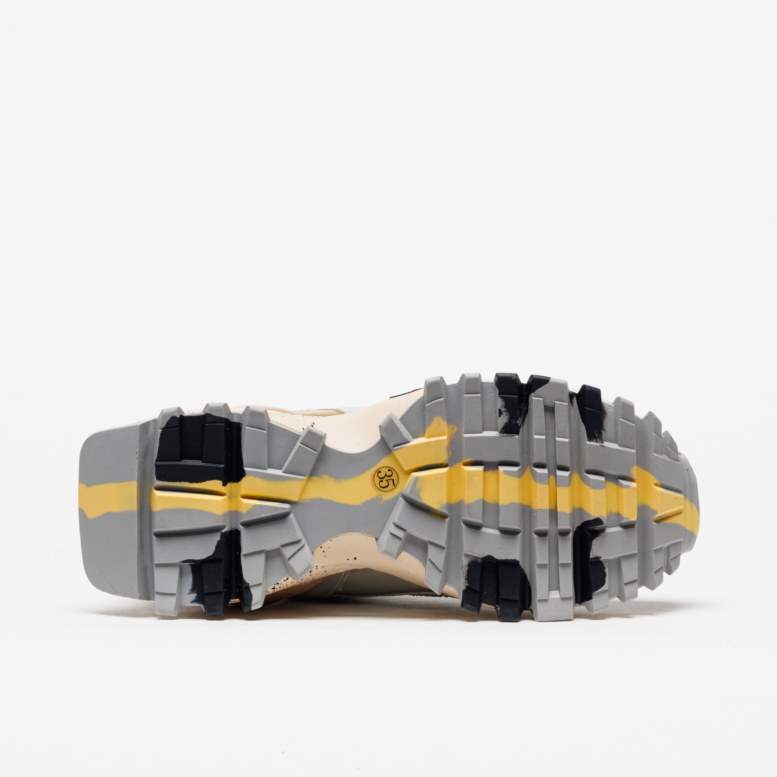 A conjugação de pele genuína com tecido cria respirabilidade e textura, enquanto a sola de borracha, com cerca de 4 cm atrás e 2,5 cm à frente, garante estabilidade, conforto e uma pisada segura no dia a dia.
