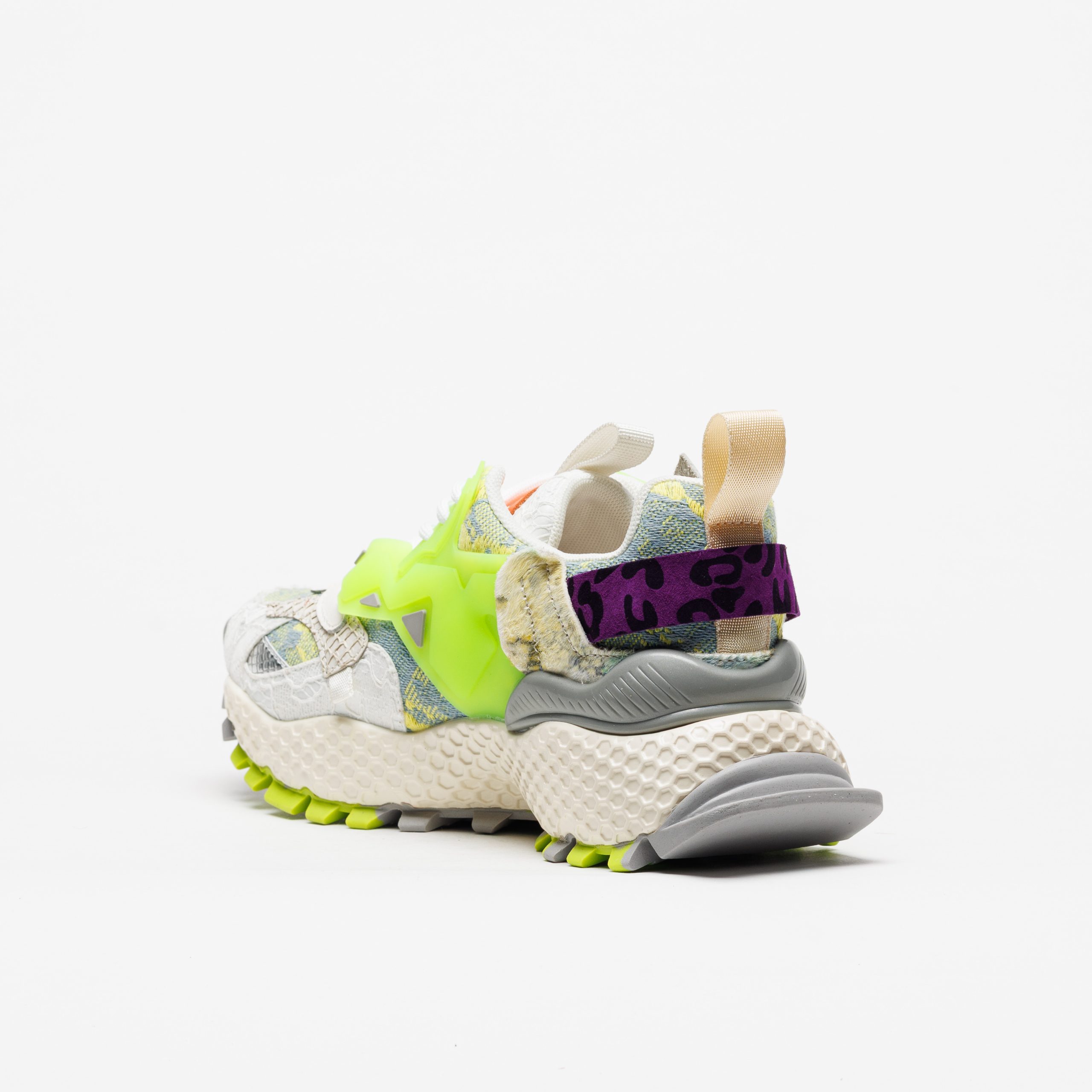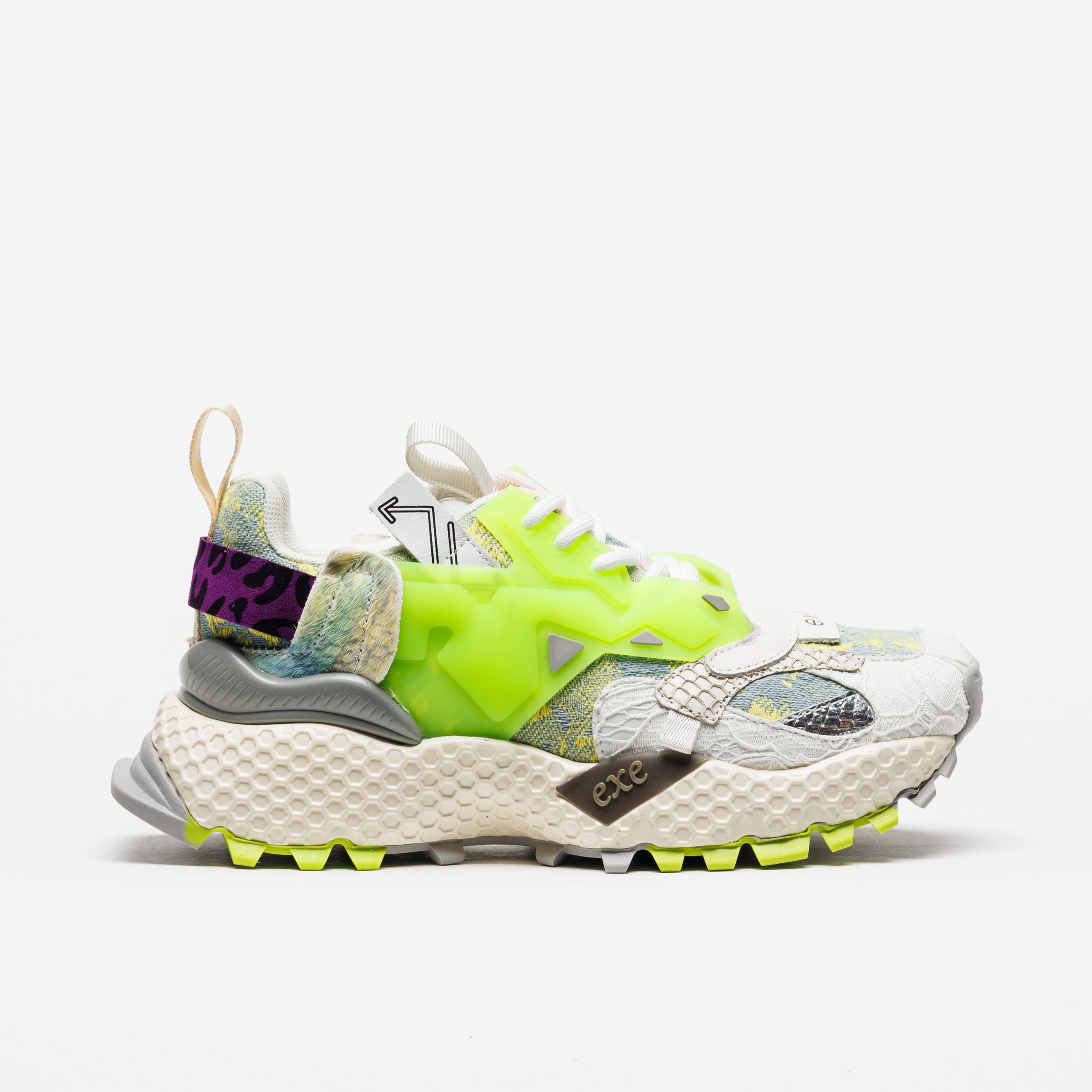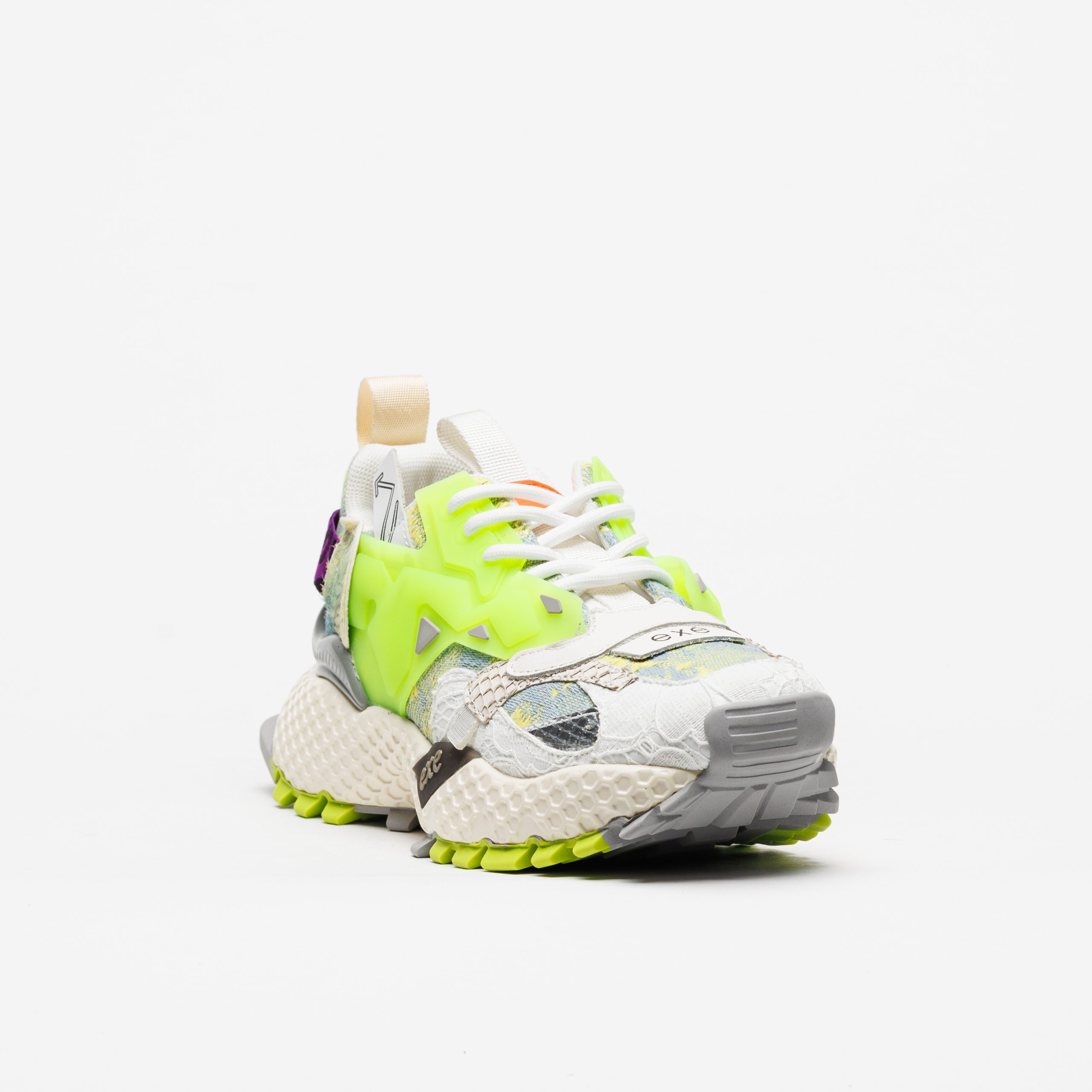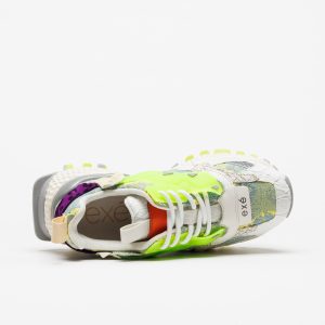 A sapatilha Exé 3020-18 Lima destaca-se pelo tom lima fluorescente combinado com branco e texturas contrastantes, criando um visual arrojado e muito atual.