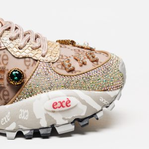 A sapatilha Exé 4032-20 Taupe Champ destaca-se pela combinação sofisticada de tons taupe, enriquecida por painéis com strass multicoloridos que refletem a luz de forma subtil e elegante.