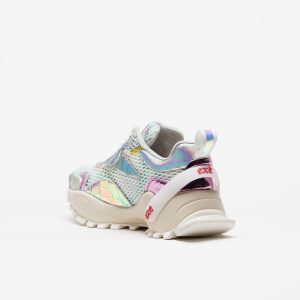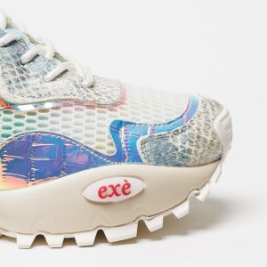 A sapatilha Exé 4032-2A White apresenta uma estética intensa e sofisticada, onde o branco domina e ganha profundidade através de texturas em malha e apontamentos subtis com brilho.