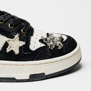Sapatilhas Nan-Ku Couture EFE-01 em cor Black, da Nova Coleção Outono / Inverno. Com exterior em texturado e acolchoado, este modelo distingue-se pelas aplicações em cristais brilhantes que elevam instantaneamente qualquer look.
