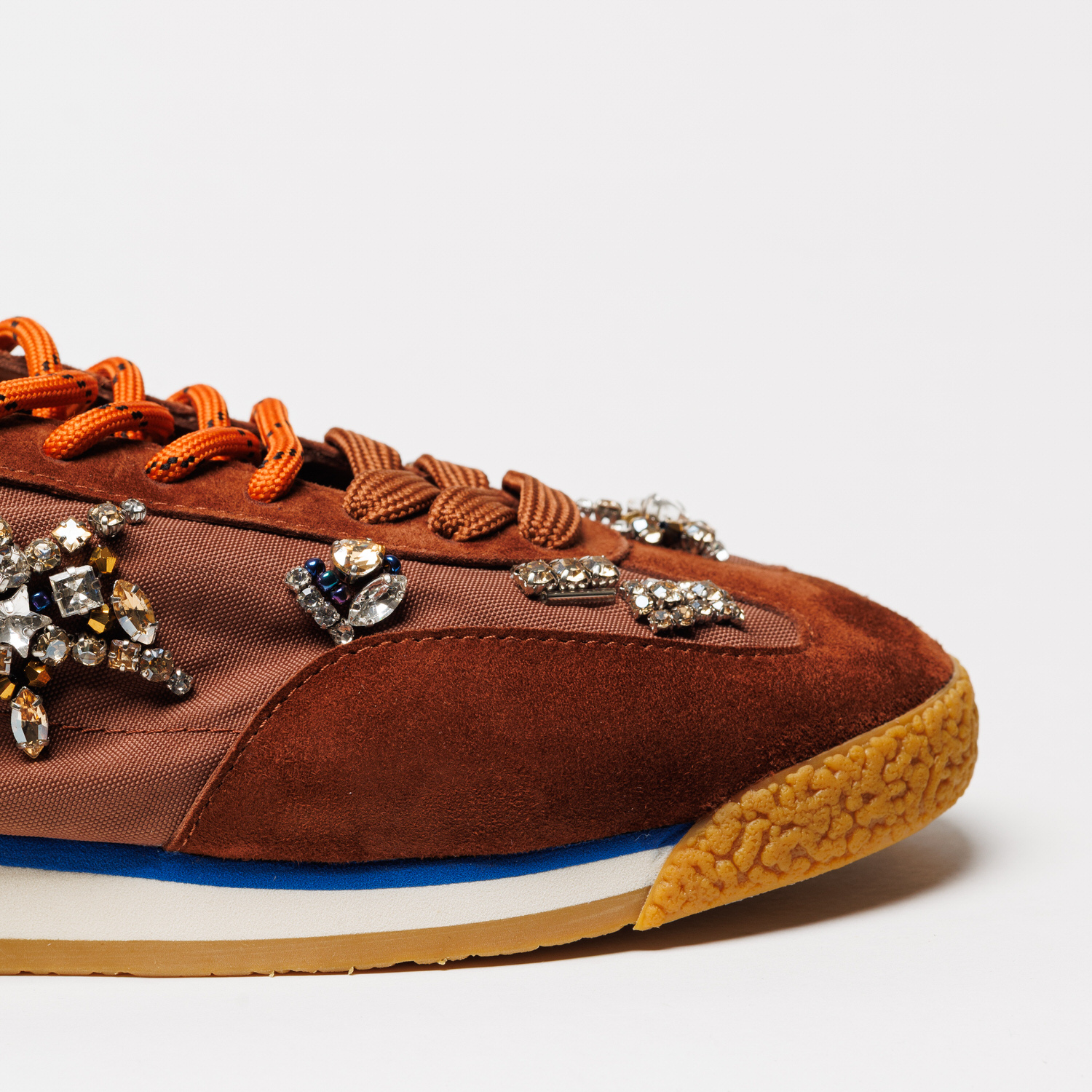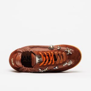 A Sapatilha Nan-Ku EDX-05T Coffee combina um estilo urbano com detalhes sofisticados, perfeita para quem procura um look casual com personalidade. Em tons quentes de castanho, este modelo destaca-se pelas aplicações brilhantes e apontamentos decorativos que conferem um toque único e feminino.