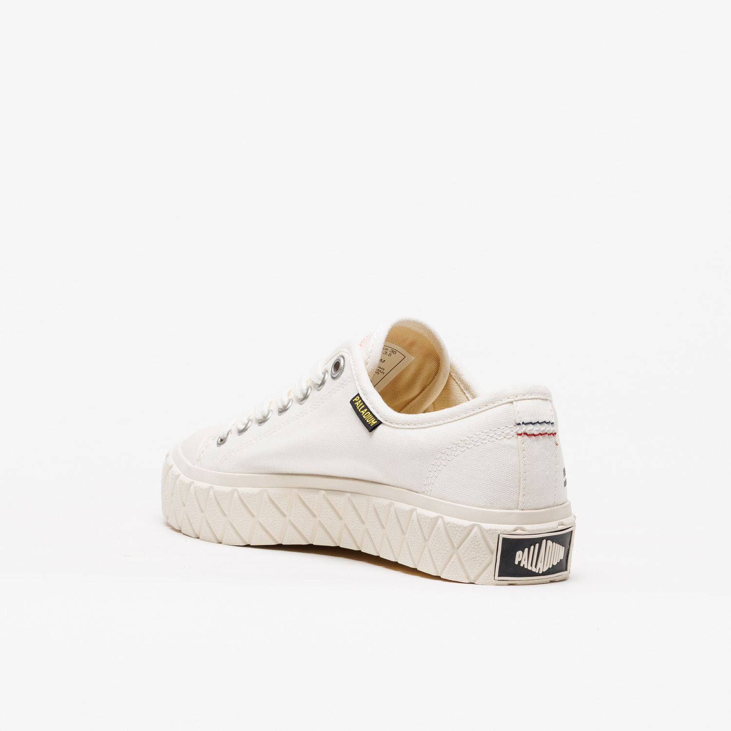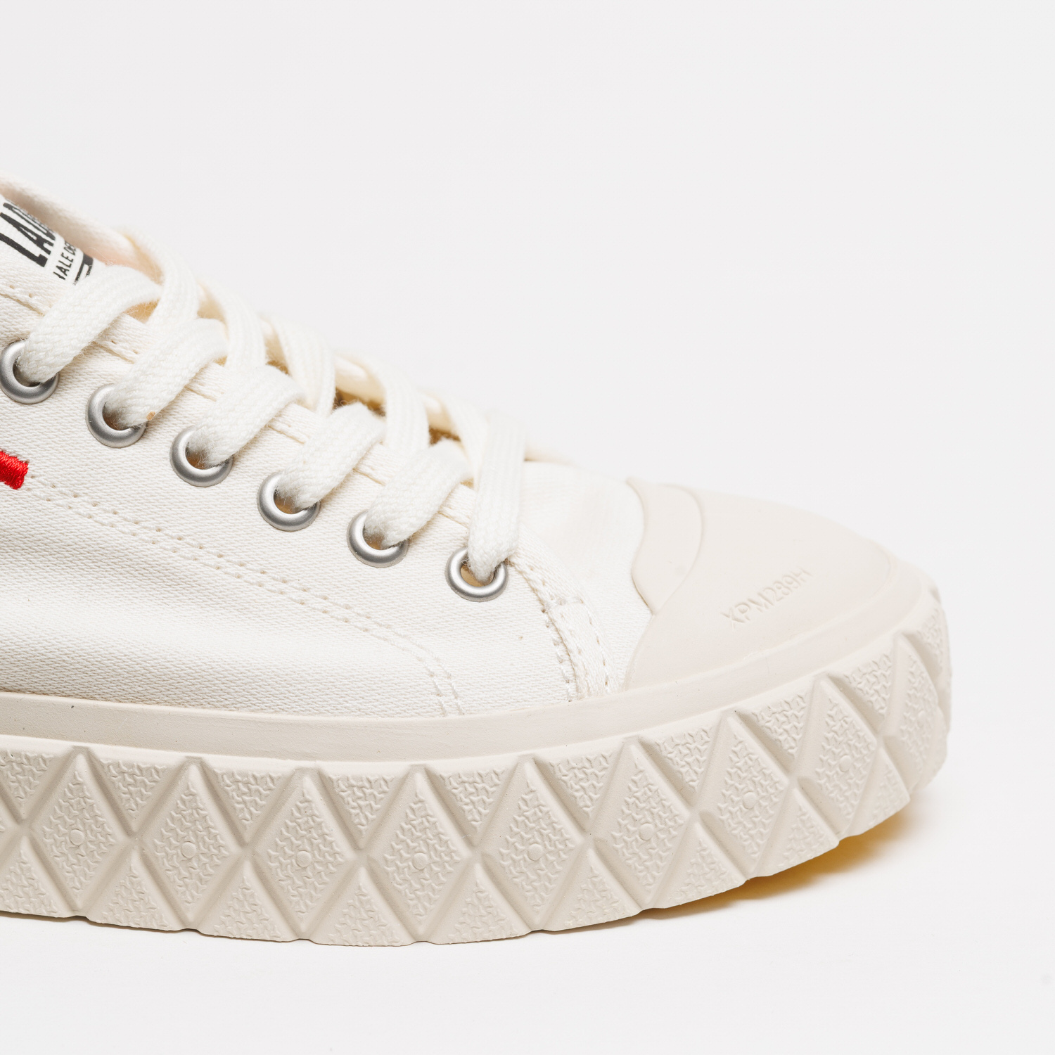 A sola robusta com padrão geométrico acrescenta personalidade à sapatilha Palladium Palla Ace Star White, garantindo também maior aderência e durabilidade.