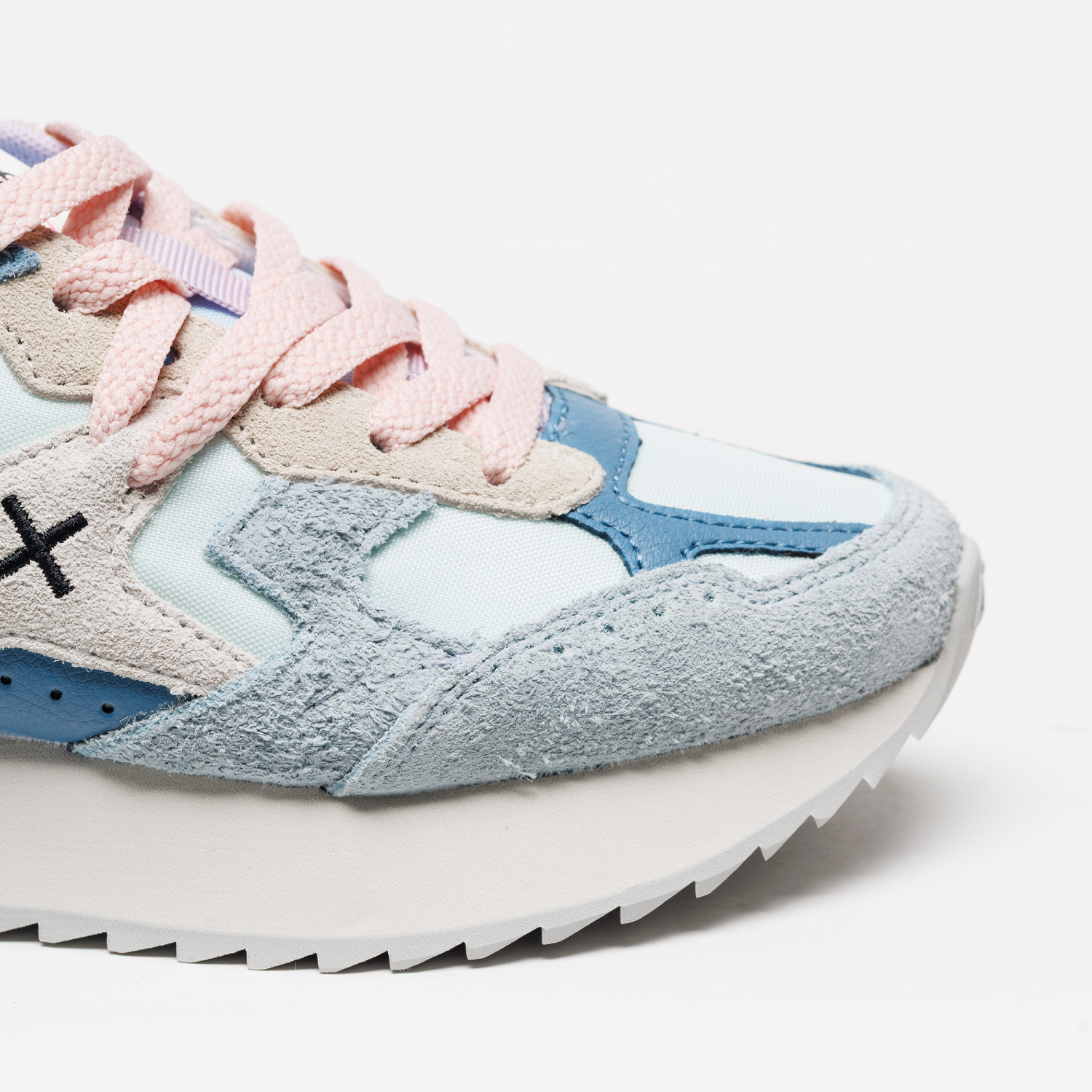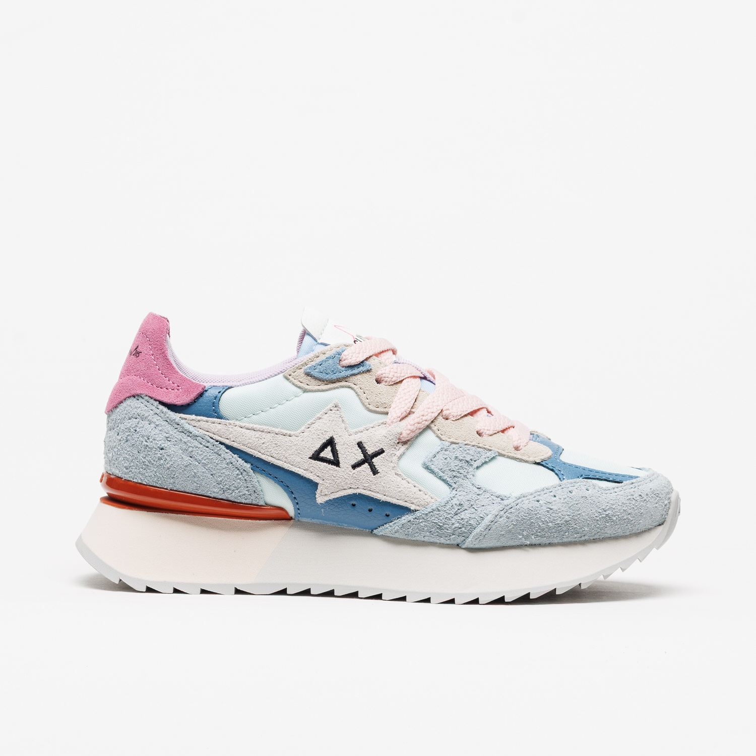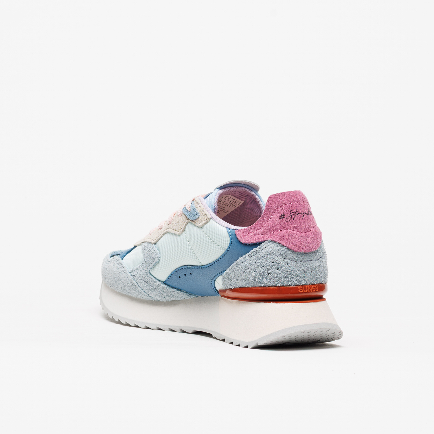 O icónico logótipo da marca na lateral reforça a identidade da sapatilha Sun68 Stargirl Multicolor Verde Acqua, enquanto os detalhes em camurça e tecido garantem leveza e conforto.