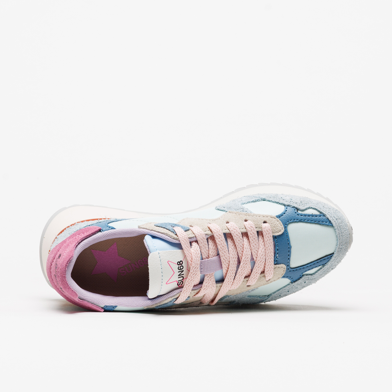 A sapatilha Sun68 Stargirl Multicolor Verde Acqua destaca-se pelo seu design moderno e pela combinação harmoniosa de cores suaves, ideal para looks casuais cheios de estilo.