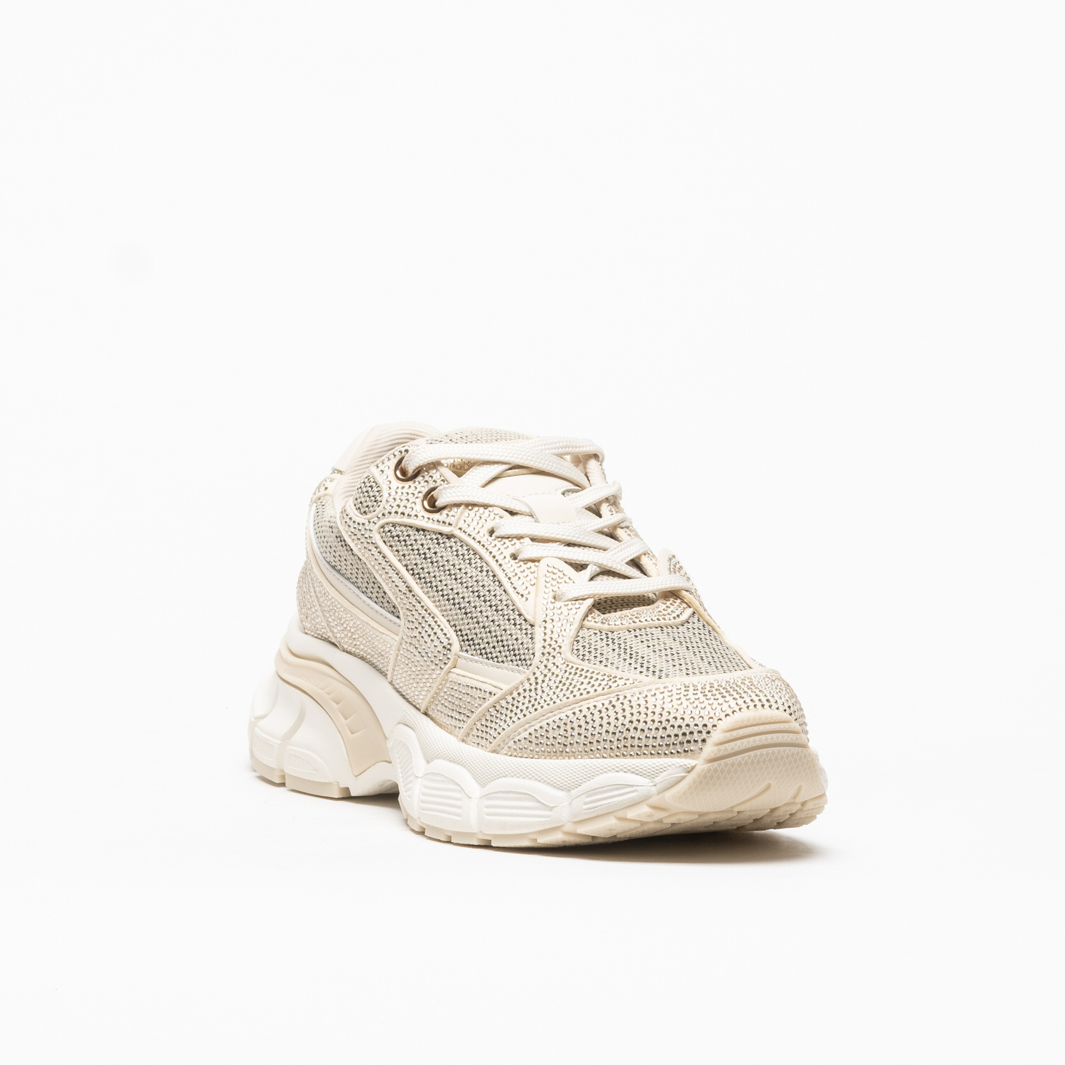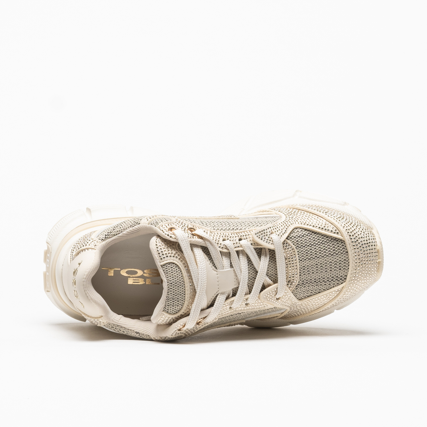As sapatilhas Tosca Blu Mirabel em Beige destacam-se pela harmonia entre tons neutros e detalhes luminosos, criando um visual sofisticado e atual.