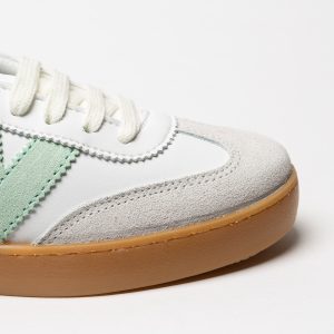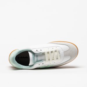 As sapatilhas Victoria 1126206 em Menta combinam uma base branca limpa com apontamentos suaves em menta e sola em tom natural, criando um visual feminino, leve e atual.