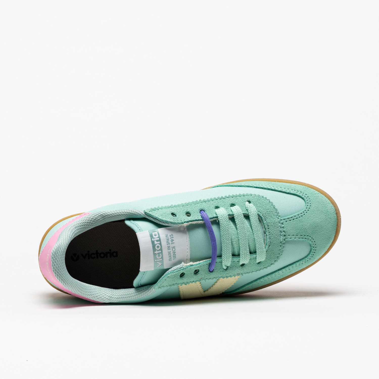 As sapatilhas Victoria 1126230 em Agua destacam-se pelo tom verde-água suave, combinado com apontamentos em bege e rosa, criando um visual fresco e feminino.