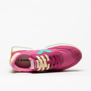 As sapatilhas Victoria 1134117 em Rosa destacam-se pela combinação vibrante de tons rosados com apontamentos em azul e amarelo, criando um visual feminino e cheio de energia.