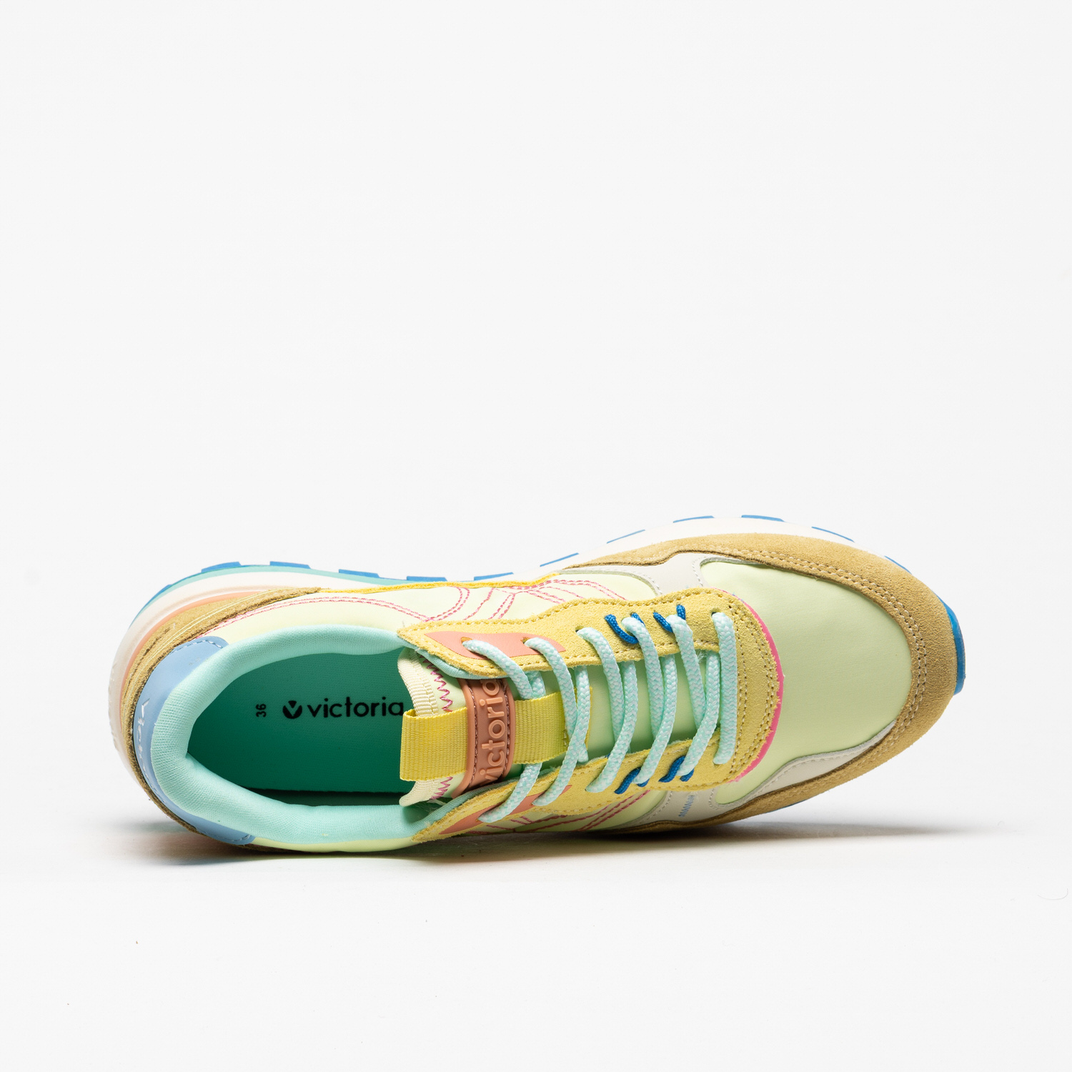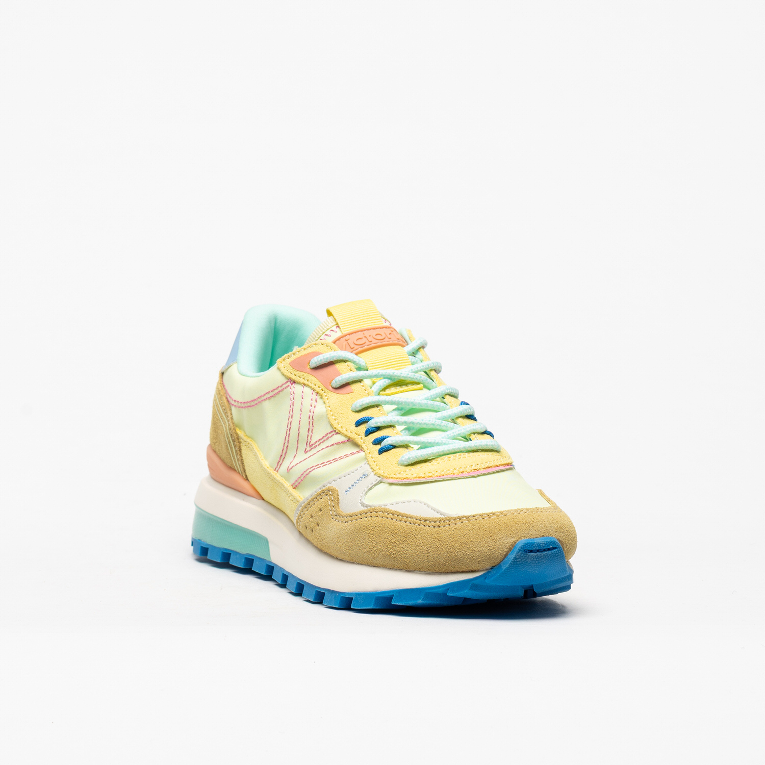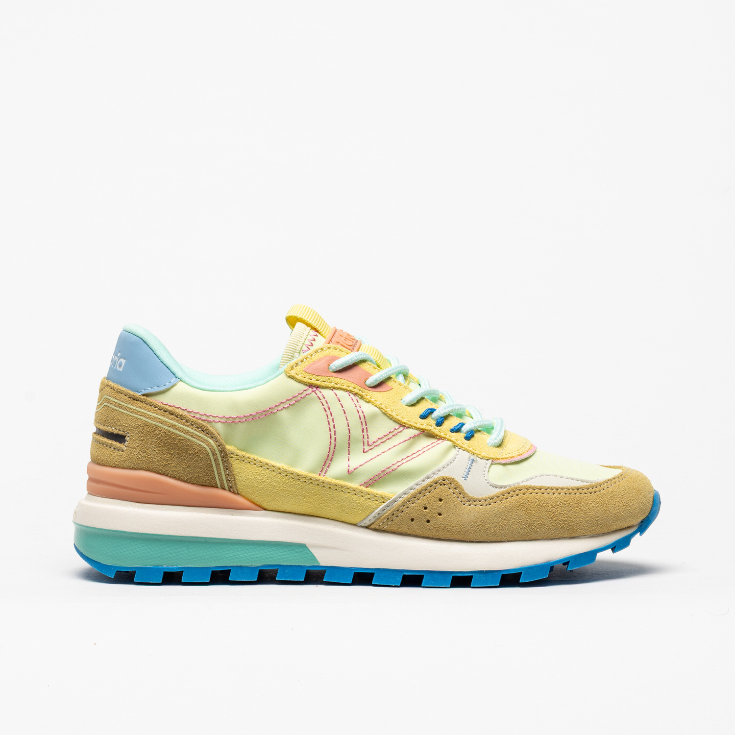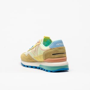 As sapatilhas Victoria 1156114 em Amarillo destacam-se pela combinação alegre de tons amarelo, pastel e detalhes contrastantes, criando um visual fresco e cheio de energia.