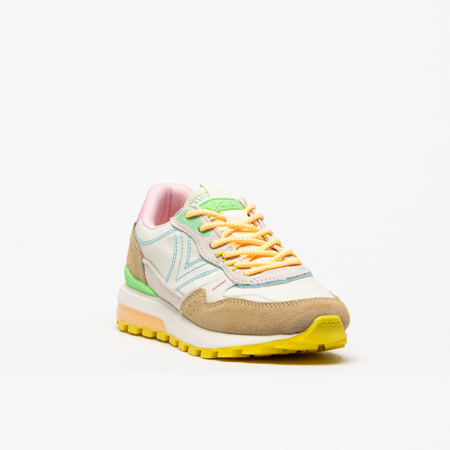 As sapatilhas Victoria 1156114 em Beige destacam-se pela combinação equilibrada de tons neutros com apontamentos de cor vibrantes, criando um visual moderno e cheio de personalidade.