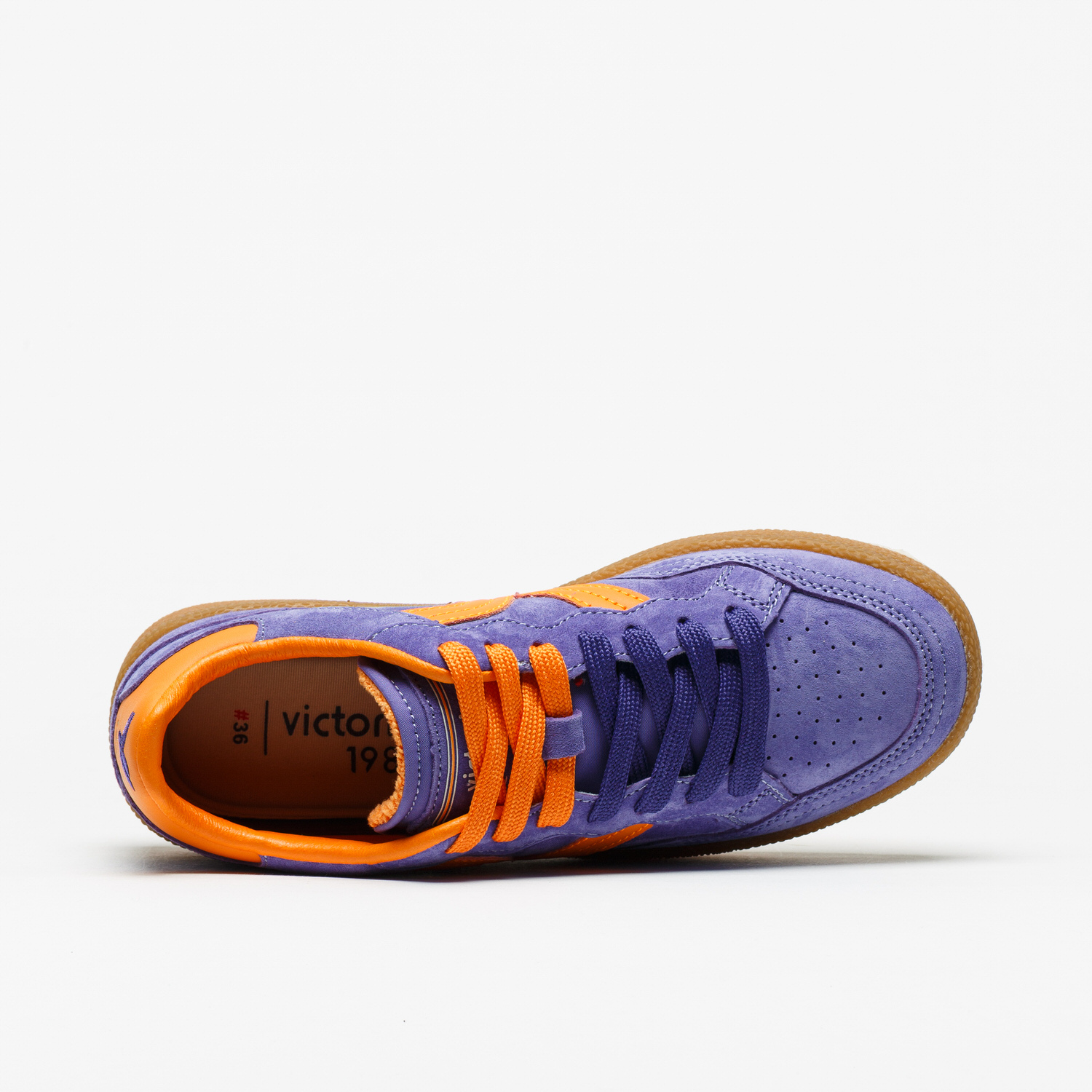 A sapatilha Victoria 8806116 Violeta afirma-se pela intensidade da cor e pelo contraste delicado com detalhes em laranja, criando um visual feminino e cheio de personalidade.